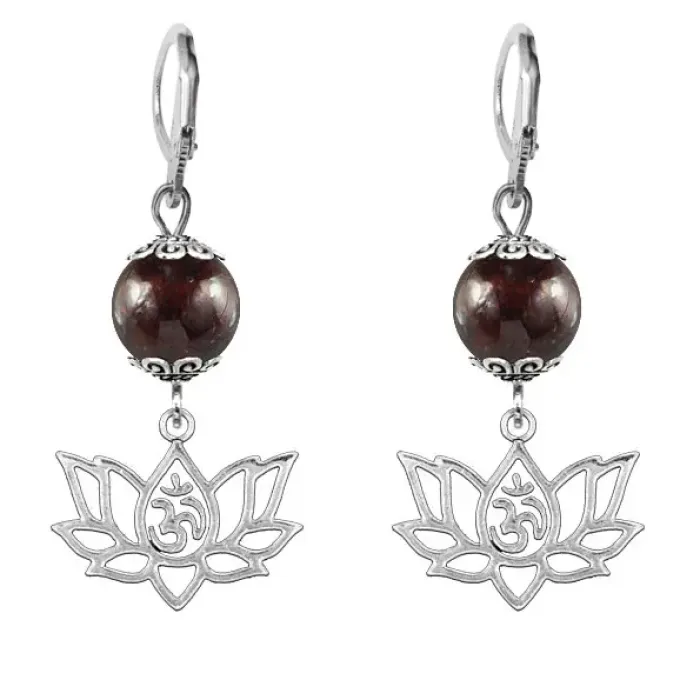 Серьги-амулеты Ом и лотос (защита, гармония, развитие), гранат SE-MKA22-30