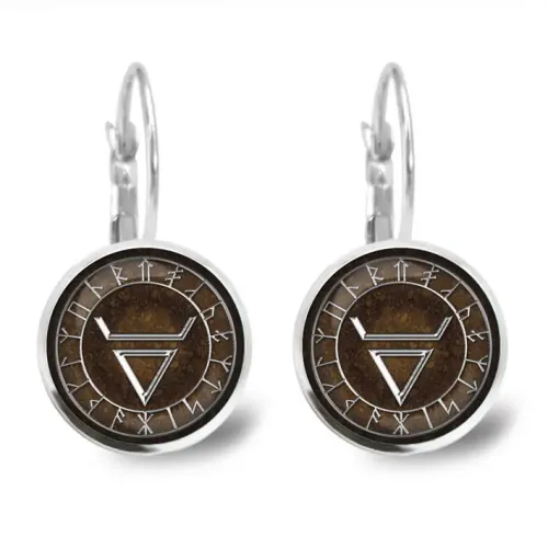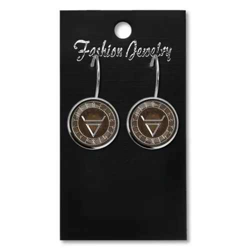Серьги-амулет с символом Велеса. Изделие из бижутерного сплава с изображением под выпуклой стеклянной линзой.