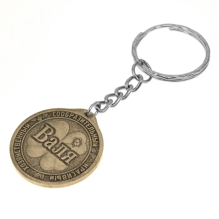 Именной брелок для ключей из латуни диаметром 30 мм со вкладышем.