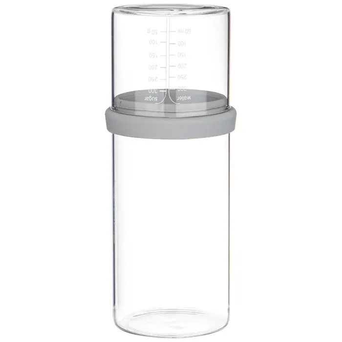 Основной материал — жаропрочное стекло, устойчивое к температурным перепадам. Крышка из силикона плотно прилегает к горловине, предотвращая просыпание содержимого и сохраняя свежесть продуктов. Лаконичный дизайн без декоративных элементов делает акцент на функциональности.