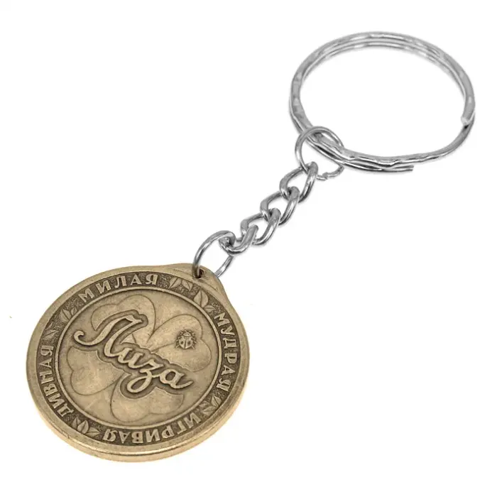 Именной брелок с женским именем «Елизавета», изготовленный из латуни, со вкладышем.