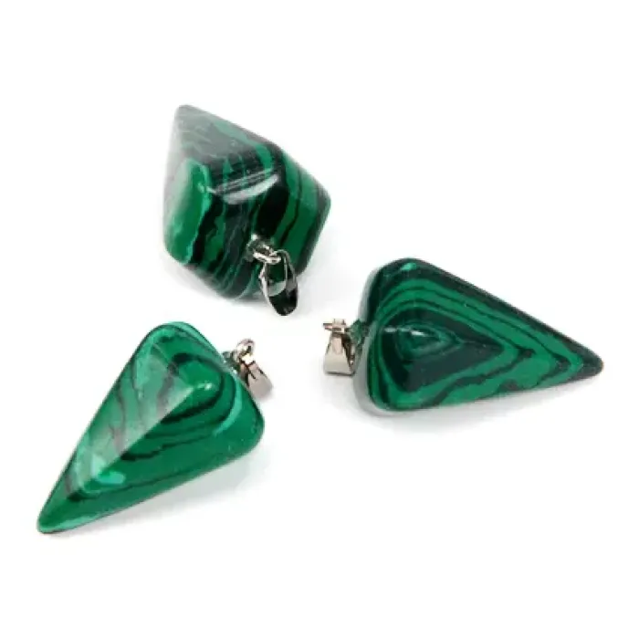 Маятник для биолокации в форме шестигранного конуса из синтетического малахита.