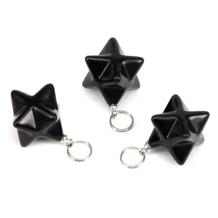 Маятник для биолокации из черного агата в форме Меркаба.