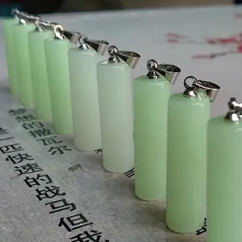 Светящийся кулон Цилиндр, нефрит, цвет свечения синий LGK003-1