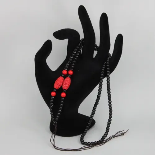 Черные с красным четки для амулета, продолговатые бусины с резьбой, пластик SH011-3