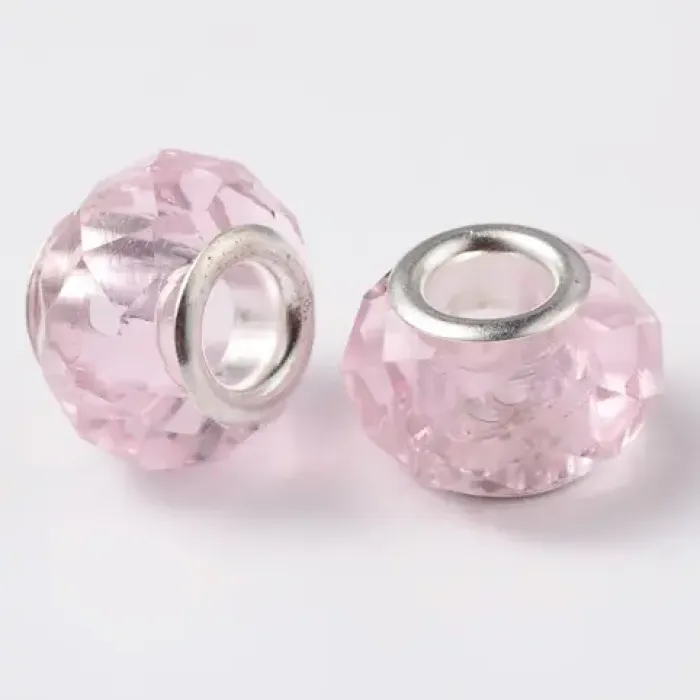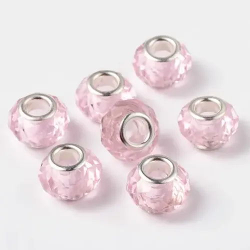 Стеклянная граненая бусина для европейского браслета 14х9мм, отверстие 5мм, 1 шт., цвет розовый FBE0022