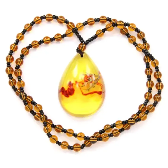 Кулон с бусами, имитация янтаря, смола с залитыми растениями AK024