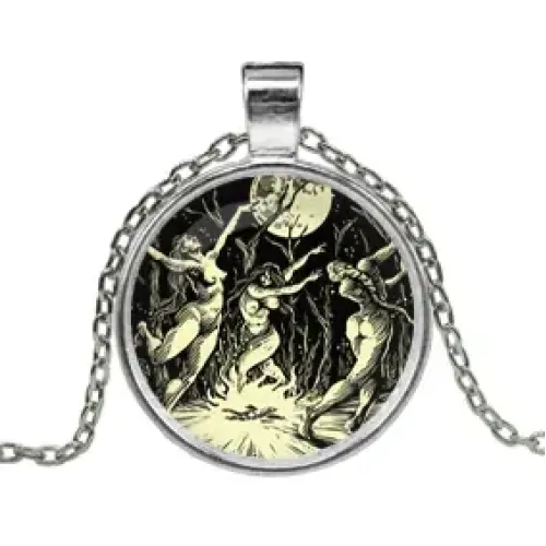 Кулон с цепочкой Шабаш ведьм — это уникальный амулет, который сочетает в себе элементы мистики и стиля. Изготовленный из серебристого металла, кулон украшен выпуклой стеклянной линзой, что придаёт ему загадочный вид. Он станет отличным дополнением к любому образу и подарит уверенность в себе благодаря своему символическому значению.