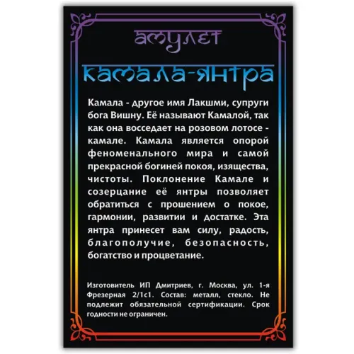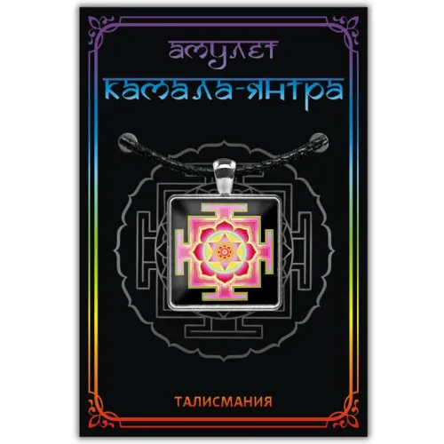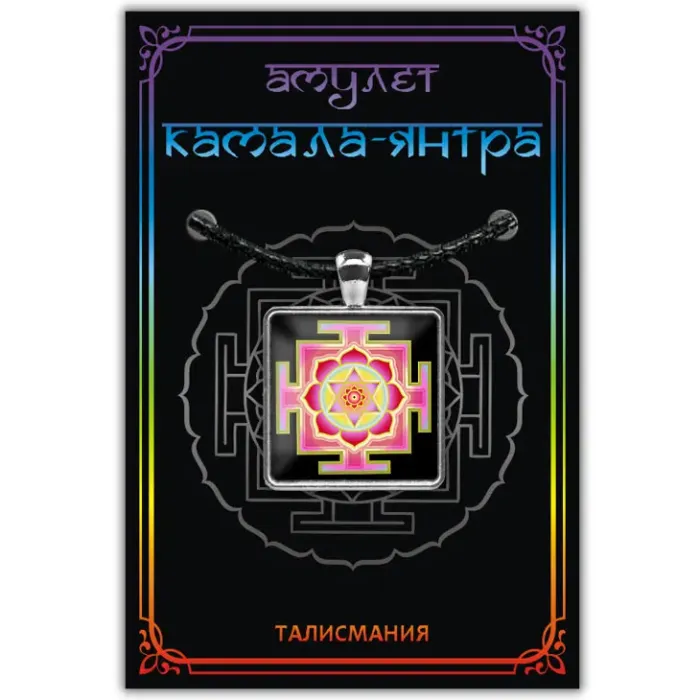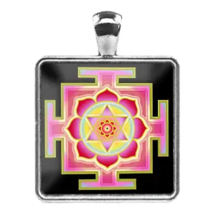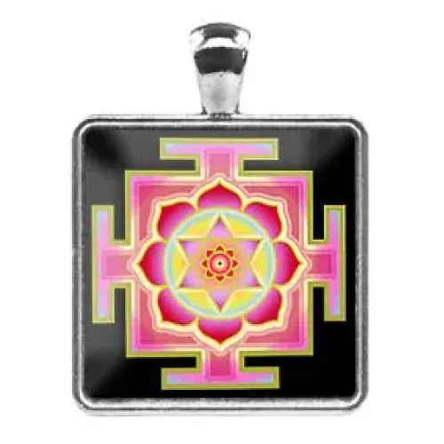 Сувенирный амулет Камала-янтра с изображением под выпуклой стеклянной линзой в оправе под серебро.