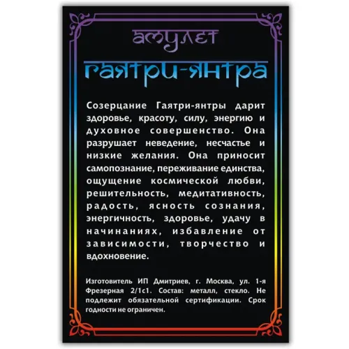 Амулет Гаятри-янтра — это уникальный предмет, который сочетает в себе духовную силу и эстетическую красоту. С изображением под выпуклой стеклянной линзой, он символизирует гармонию и защиту. Основные особенности: