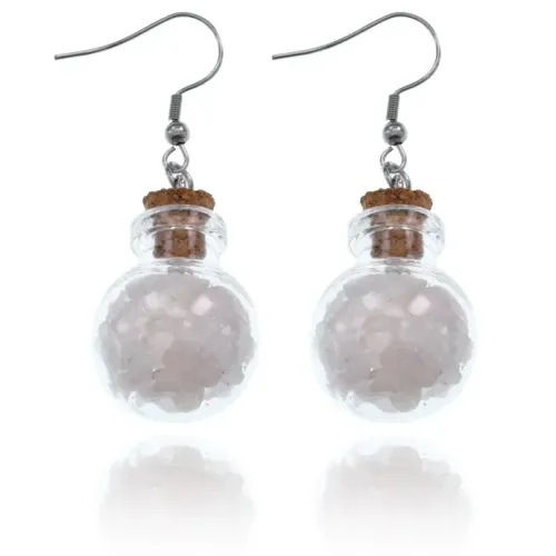 Серьги-флаконы в виде шара с натуральным розовым кварцем.