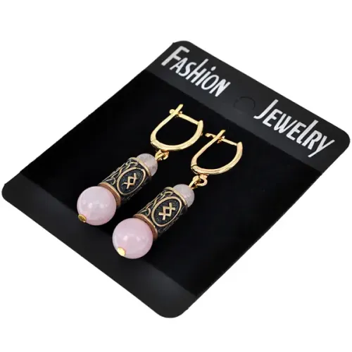 Серьги-амулеты с руной Ингуз (Любовь, творчество, отношения), розовый кварц SER004