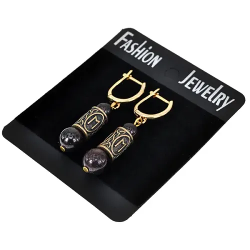 Серьги-амулеты с руническими бусинами и натуральным камнем гранат.