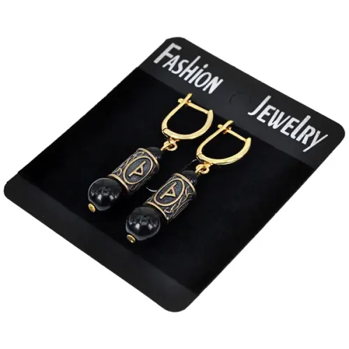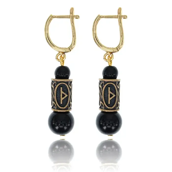 Серьги-амулеты с руной Турисаз (Успех в делах, защита, сексуальность), черный агат SER008