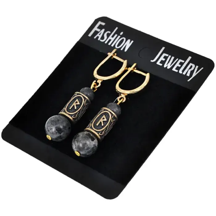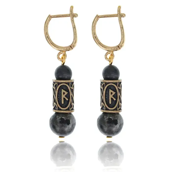 Серьги-амулеты с руной Райдо (Защита в пути, развитие, продвижение), лабрадор SER009