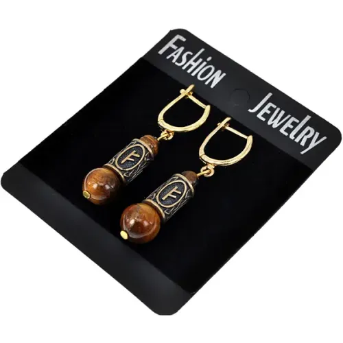 Серьги-амулеты с руной Феху (Карьера, бизнес, богатство, любовь), тигровый глаз SER016