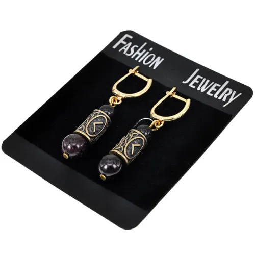 Серьги-амулеты с руническими бусинами и натуральными камнями. Материал: латунь, бижутерный сплав с гипоаллергенным покрытием.