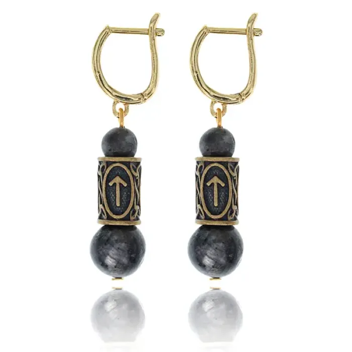 Серьги-амулеты с руной Тейваз (Управление своей судьбой, победа), лабрадор SER019