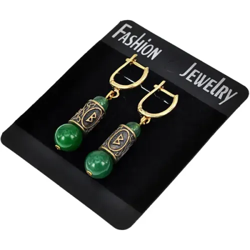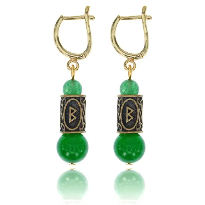 Серьги-амулеты с руной Беркана (Достижения, любовь, рост, изобилие), нефрит SER020