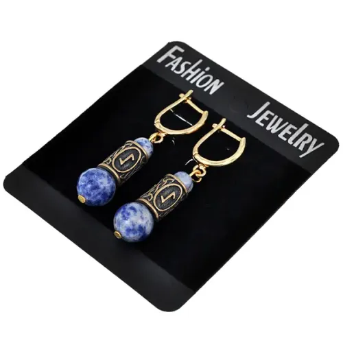 Серьги-амулеты с руной Эйваз (Устранение любых препятствий), содалит SER021