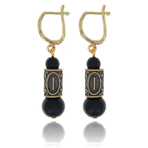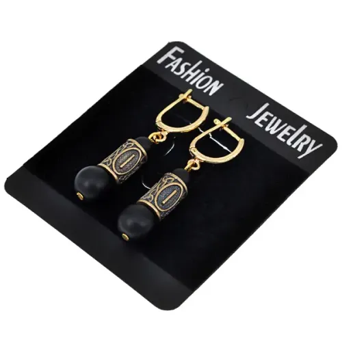 Серьги-амулеты с руной Иса (Остановка любых негативных ситуаций), шунгит (синт.) SER024
