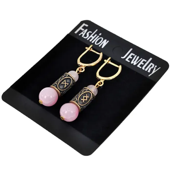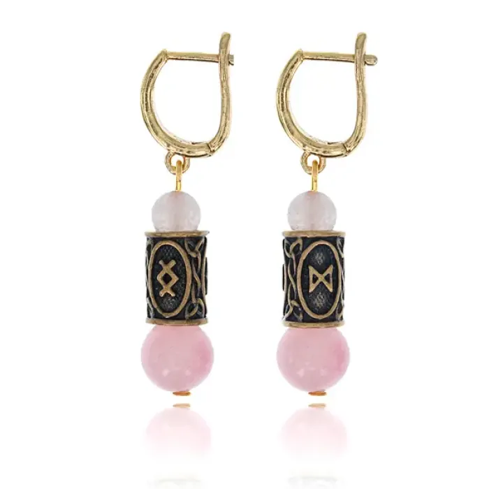 Серьги-амулеты с рунами Дагаз и Ингуз (Благополучие, здоровье, долголетие), розовый кварц SER025