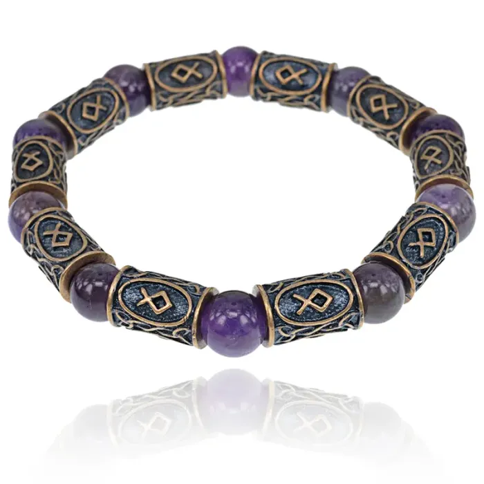 Рунический браслет Одал с натуральным камнем Аметист BSRL012