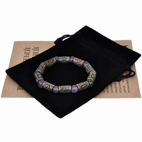 Рунический браслет Одал с натуральным камнем Аметист — это стильный и значимый аксессуар, который традиционно используется в качестве личного оберега. Он помогает защитить собственность, способствует личностному развитию и достижению поставленных целей.