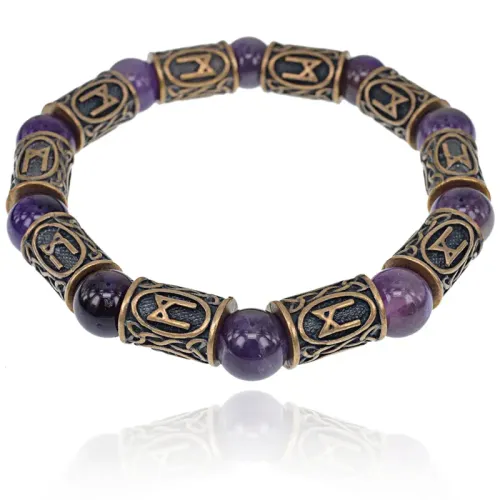Рунический браслет Манназ — это уникальный аксессуар, который сочетает в себе красоту аметиста и глубокий символизм. Этот браслет традиционно используется для установления гармонии в отношениях и достижения устойчивого положения в обществе.