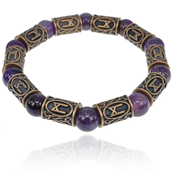 Рунический браслет Манназ с натуральным камнем Аметист BSRL023