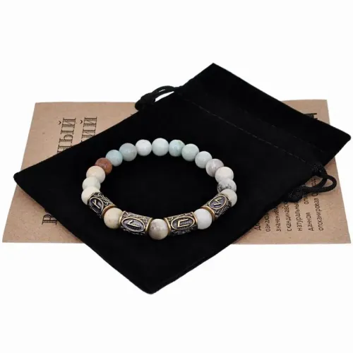 Рунический браслет 'Уверенность в себе' — это уникальный аксессуар, который сочетает в себе силу амазонита и мощь древних рун. Он традиционно используется для обретения уверенности и преодоления страхов. Основные руны: Альгиз, Лагуз, Уруз и Соулу помогают укрепить внутреннюю силу и способствуют движению вперед.