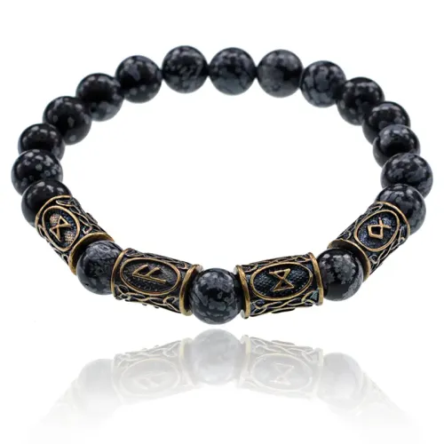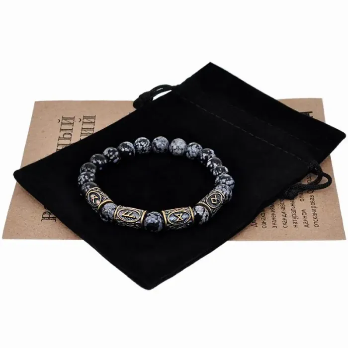 Рунический браслет Поддержка богов и предков, 8мм, Обсидиан BSRL066