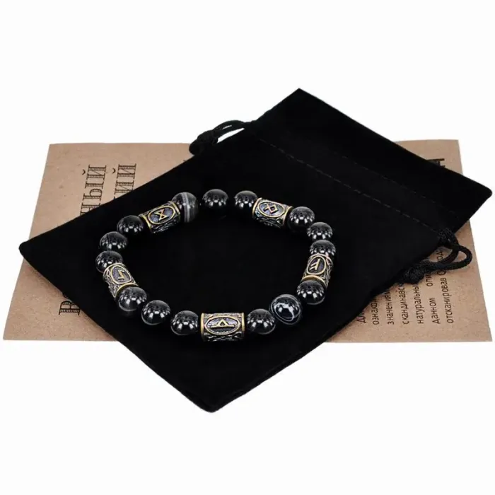 Рунический браслет Привлечение денег, 10мм, Черный агат BSRL080