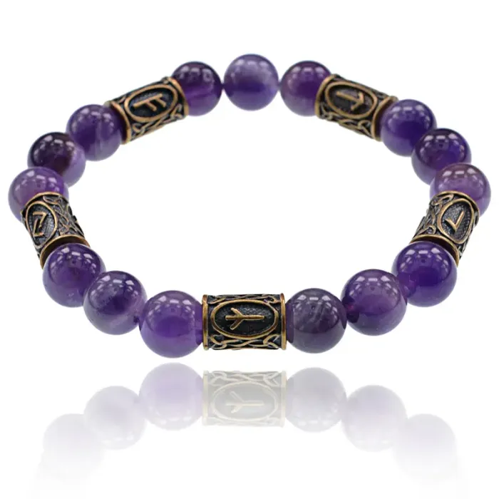 Рунический браслет Власть в трех мирах, 10мм, Аметист BSRL086