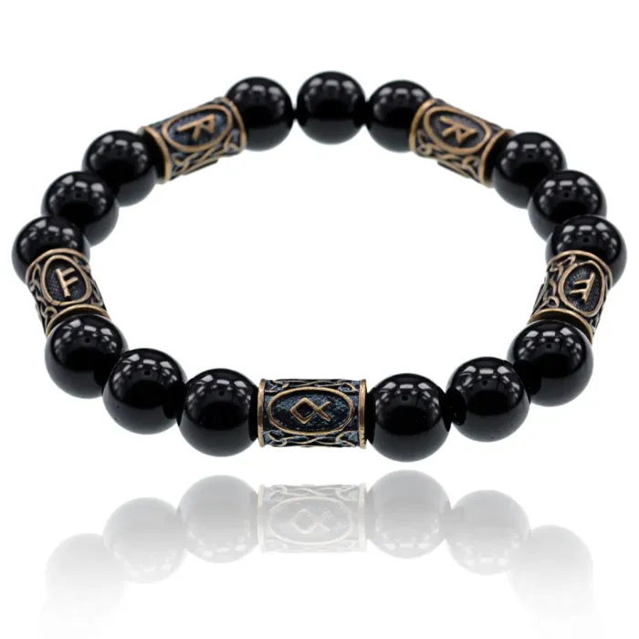 Рунический браслет Формула для обретения богатства, 10мм, Черный агат BSRL089