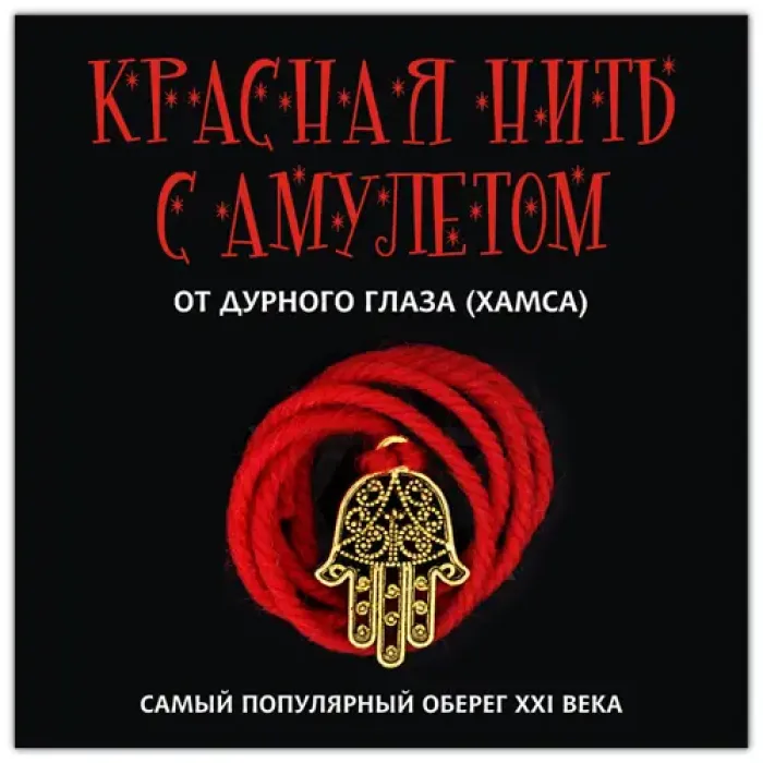 Красная нить с амулетом От дурного глаза (Хамса), цвет золот. KN102-1
