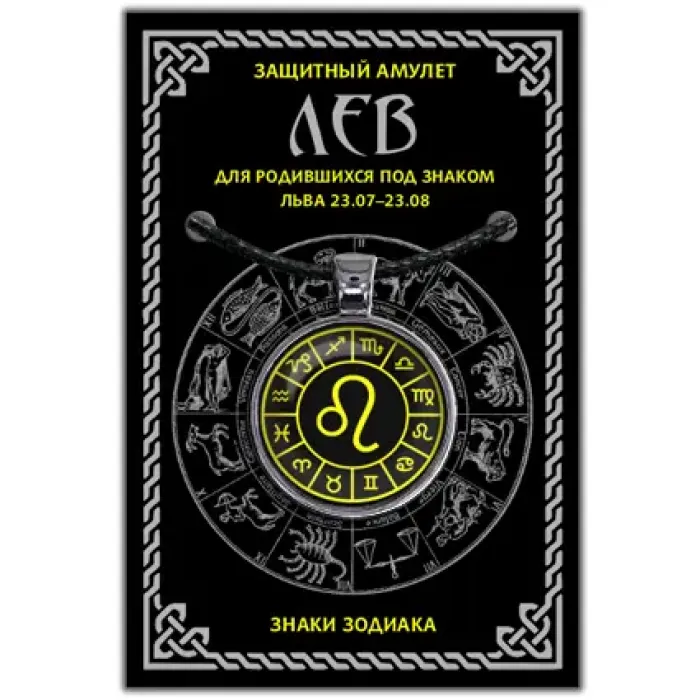 Защитный амулет из серии Знаки Зодиака, предназначенный для людей, родившихся под знаком Льва (23.07 - 23.08). Этот амулет символизирует динамичность, темперамент и амбициозность Львов, принадлежащих к Огненному тригону. В комплекте идет шнурок и вкладыш с описанием, а также упаковка в прозрачный полипропиленовый пакет с европодвесом для удобного размещения на торговом оборудовании.