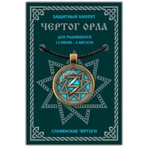 Амулет Чертог Орла — защитный амулет из серии Славянские Чертоги, который поможет создать гармонию и защиту для рожденных с 13 июля по 4 августа. Этот уникальный предмет основан на древнем славянском гороскопе, использовавшемся предками задолго до появления знаков Зодиака. Каждый Чертог имеет своего покровителя среди Славяно-Арийских Богов, что придаёт амuletу особую силу и значимость.