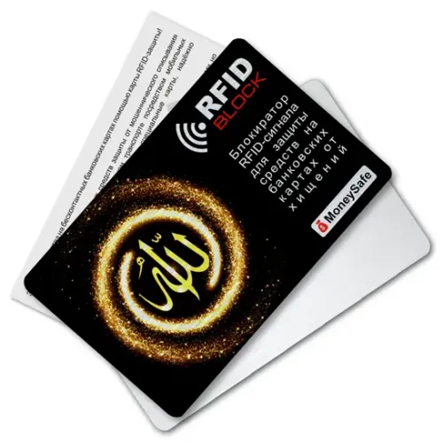 Защитная RFID-карта Аллах — это надежное решение для защиты средств на бесконтактных банковских картах. Изготовленная из тонкого металла, она обеспечивает безопасность всего кошелька или бумажника, даже находясь в отдельном кармашке. Упакована в прозрачный полипропиленовый пакетик, что позволяет избежать царапин на пластиковых картах при хранении. Рекомендуется оставлять карту в пакетике для максимальной защиты и долговечности использования.