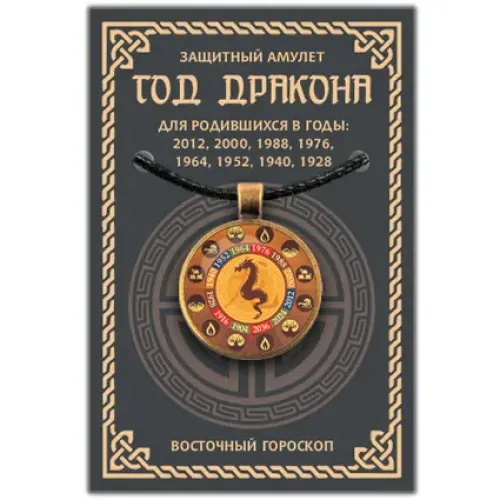 Амулет Восточный Гороскоп - Год Дракона представляет собой защитный талисман, который символизирует силу и удачу для людей, родившихся в год Дракона. Этот амулет станет отличным подарком для тех, кто ценит восточную философию и традиции.