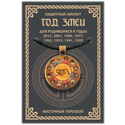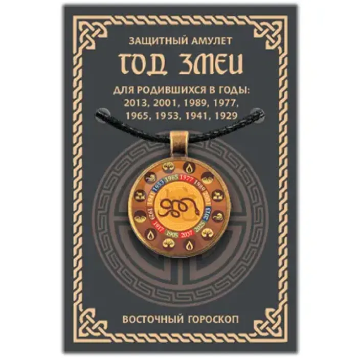 Амулет Восточный Гороскоп - Год Змеи является защитным символом, который помогает привнести удачу и гармонию в жизнь. Этот амулет предназначен для людей, родившихся в год Змеи, что делает его особенно значимым для них. Основные особенности включают: