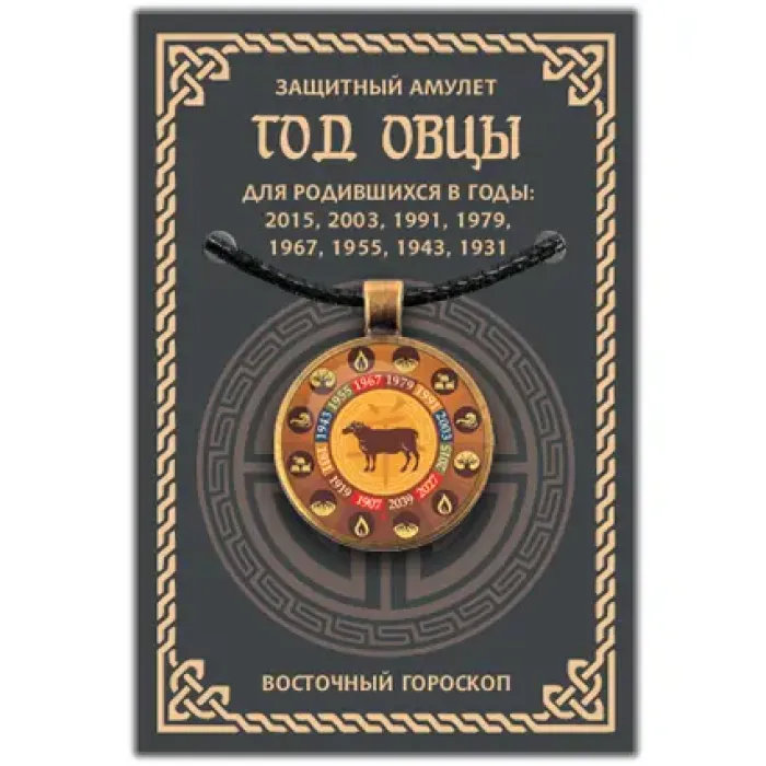 Амулет Восточный Гороскоп - Год Овцы (Козы) представляет собой защитный талисман, который символизирует удачу и благополучие для людей, родившихся в год Козы. Этот уникальный амулет не только украшает, но и служит оберегом на жизненном пути. В комплекте с амулетом идет шнурок и вкладыш с описанием, что делает его отличным подарком или сувениром.
