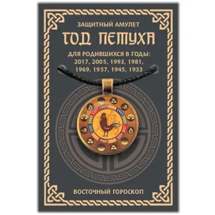 Амулет Восточный Гороскоп - Год Петуха является защитным символом, который традиционно используется для привлечения удачи и гармонии. Этот амулет идеально подходит для людей, родившихся в год Петуха: 2017, 2005, 1993, 1981, 1969, 1957 и 1945.