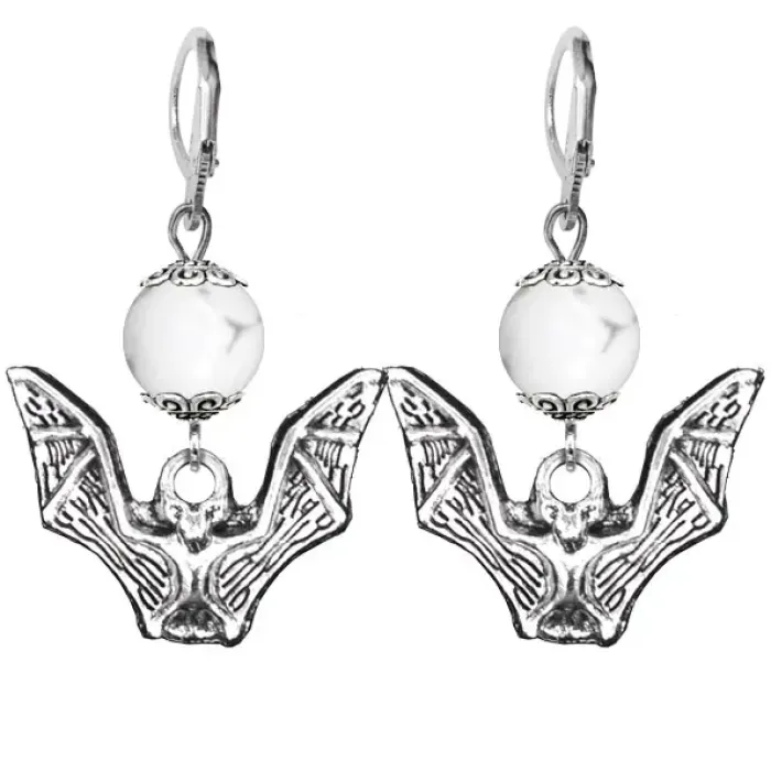 Серьги-амулеты Летучая мышь (защита, счастье, успех), кахолонг SE-MKA23-12
