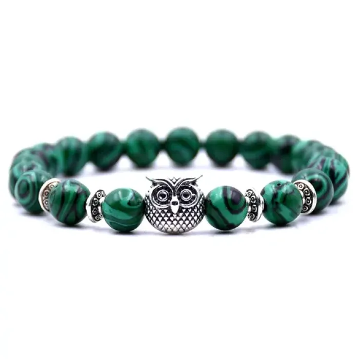Браслет Сова из камня Малахит (синт.) 8мм BJBS-102M-S