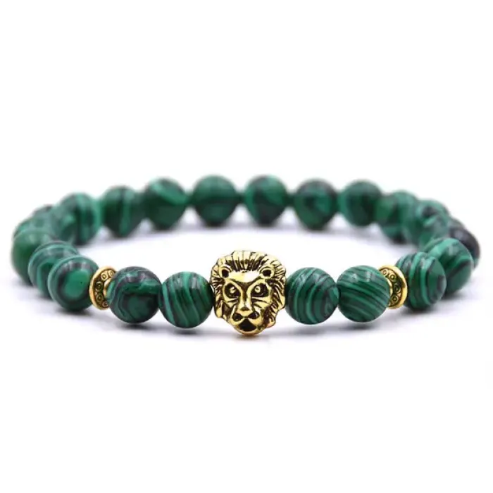 Браслет Лев из камня Малахит (синт.) 8мм BJBS-105M