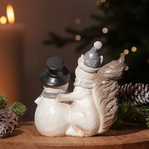Фигурка белка со снеговиком 14,5*7*14 см – Lefard