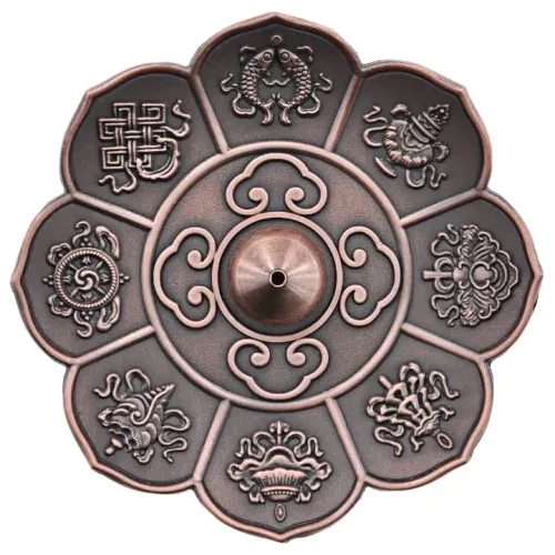Подставка для благовоний «Лотос» в медном цвете создаёт гармоничную атмосферу и добавляет изысканности в процесс ароматерапии. Элегантный дизайн в виде цветка лотоса придаёт интерьеру утончённость. Компактные размеры: диаметр — 8,5 см и высота — всего 0,5 см позволяют удобно размещать подставку на любом столе или полке. Изготовлена из качественного материала, что обеспечивает долговечность и устойчивость к высоким температурам. Рекомендуется использовать подставку с любимыми благовониями во время медитаций или релаксации. Она также может стать прекрасным элементом декора и уютной атмосферы в доме, а также отличным подарком для ценителей аромата и гармонии.