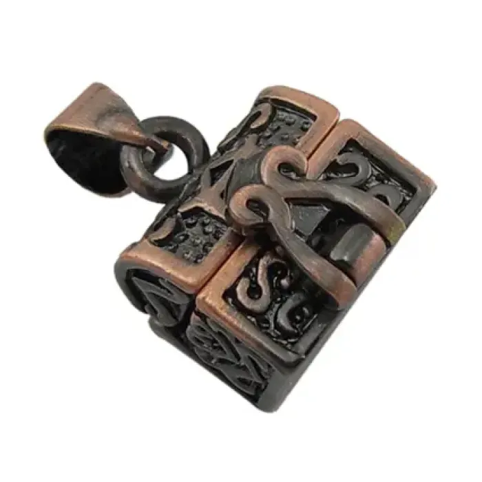 Открывающийся кулон-шкатулка размером 19х12 мм выполнен из металла с элегантным медным оттенком. Этот стильный аксессуар идеально подходит для хранения молитв, заговоров и руноскриптов. Кроме того, в нем можно разместить твердые духи или мягкие прокладки, пропитанные эфирными маслами. Компактные размеры делают кулон удобным для ношения и использования в повседневной жизни. Шнурок не входит в комплект и приобретается отдельно. Такой кулон станет прекрасным подарком или элементом для создания уюта.