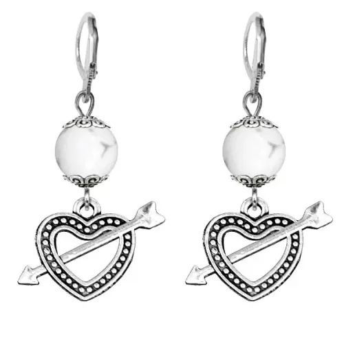 Серьги-амулеты Сердце со стрелой (любовь), кахолонг SE-MKA23-22